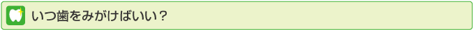 皆さんもよくご存知の「プラーク(歯こう)」ですが、これはただの食べかすではありません。その正体は「細菌のかたまり」。この細菌がむし歯や歯周病などを引き起こします。食後の食べかすは、およそ3分をすぎるとプラークに変化しはじめ、むし歯の原因となる酸を出しはじめるといわれています。そのため、歯みがきはプラークになる前の食後3分以内がベスト!遅くとも10分以内にはみがきたいところですね…。
